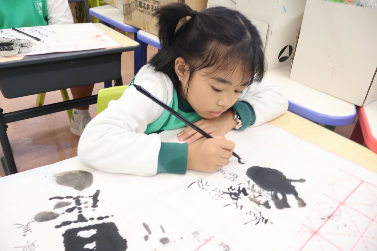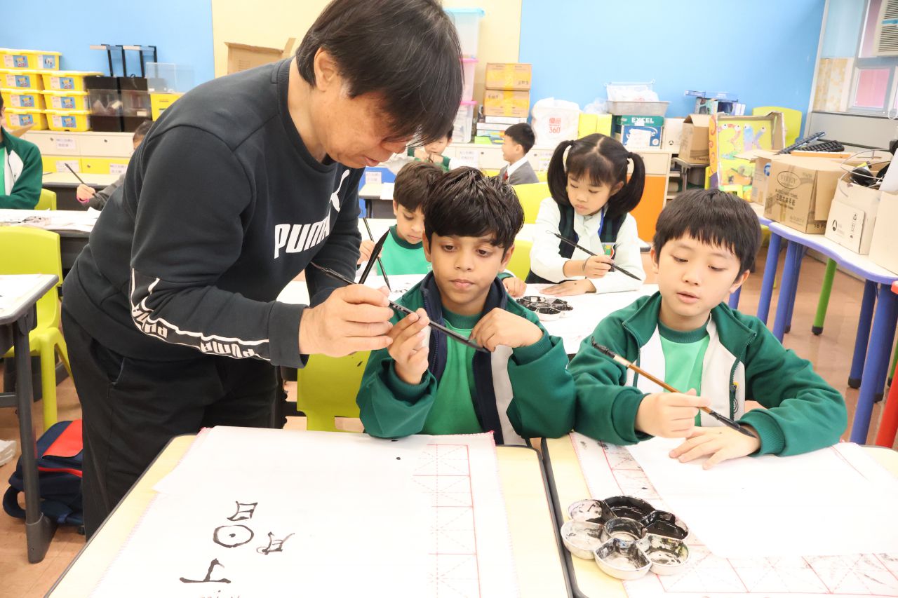 中文書法興趣班旨在通過書法藝術幫助非華語學生更深入地了解中華文化,讓學生在輕鬆的氛圍中練習,發展創造力和專注力。