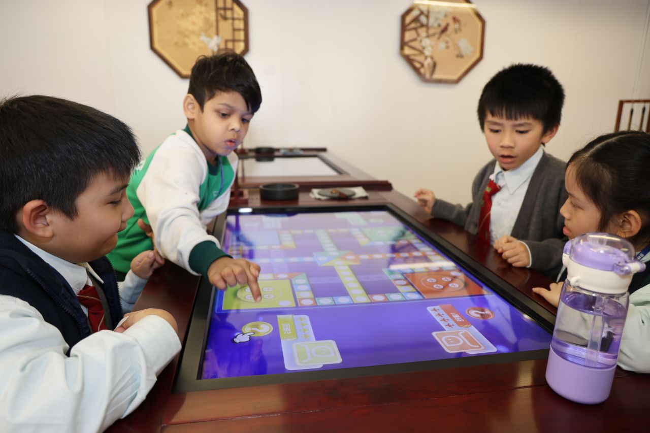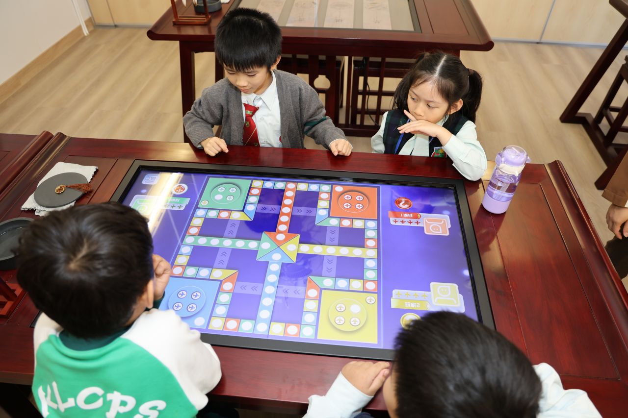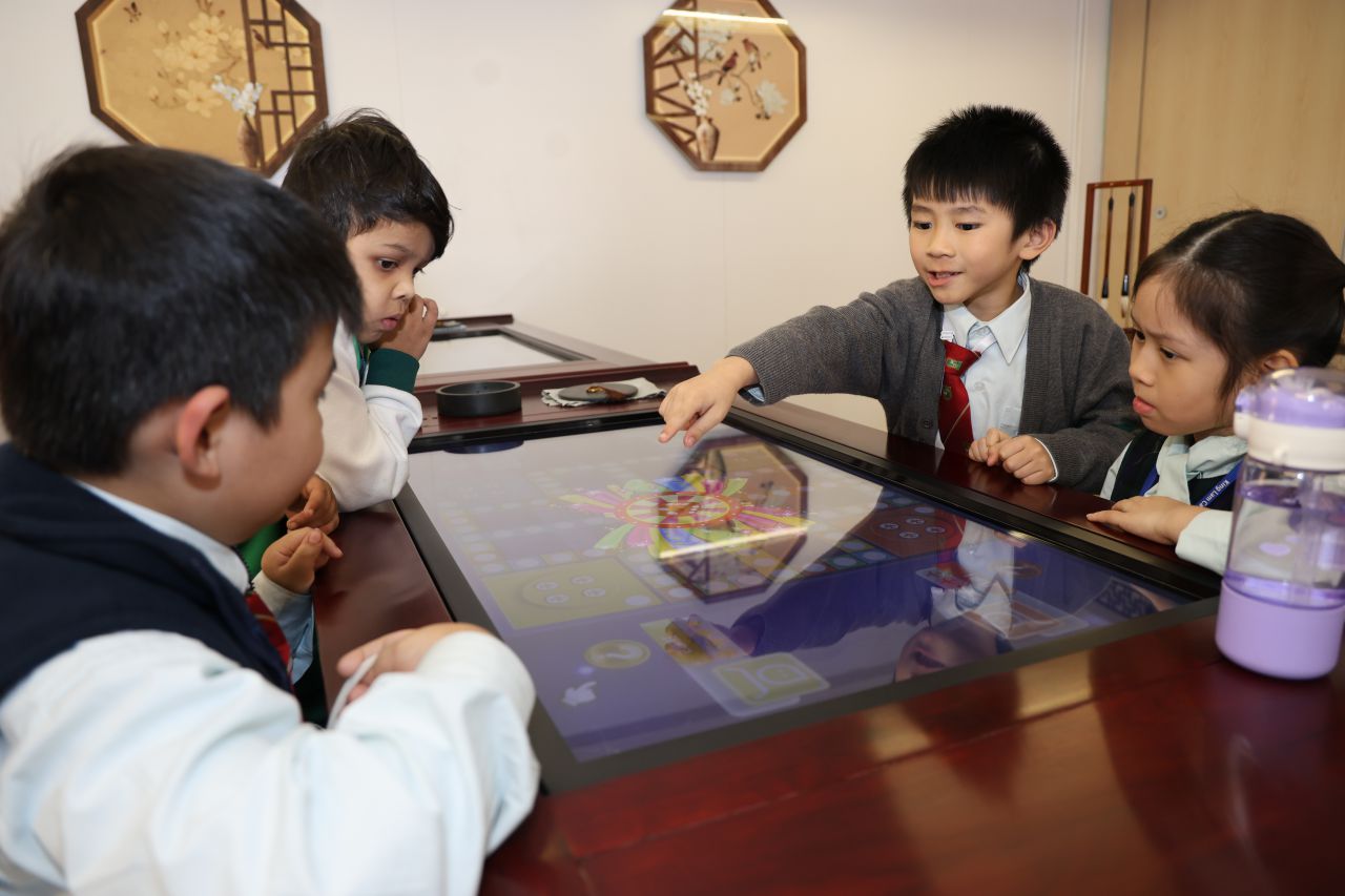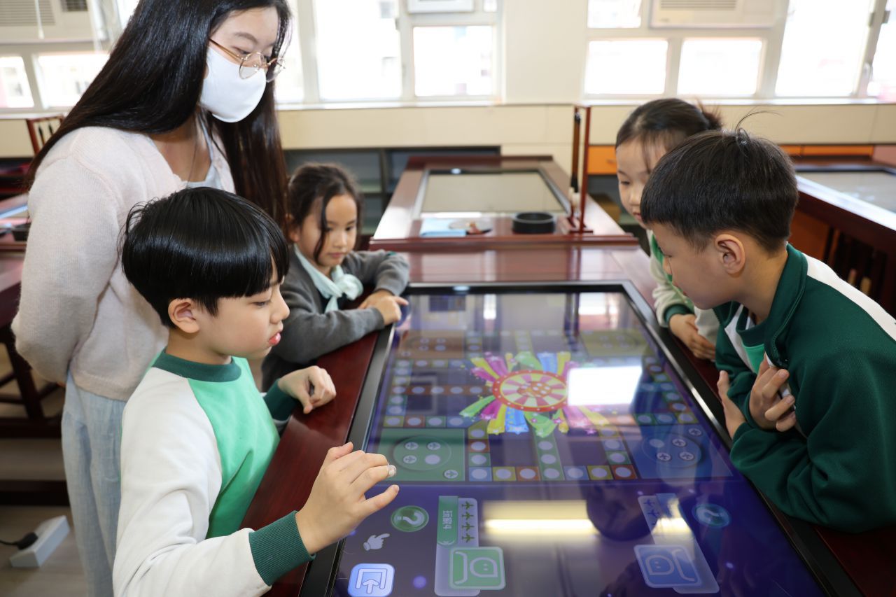 在數學科,一年級同學利用學校添置的電子書法桌,進行了桌遊活動,鞏固了學生對數字順數、倒數的概念及增強了他們的數感。
