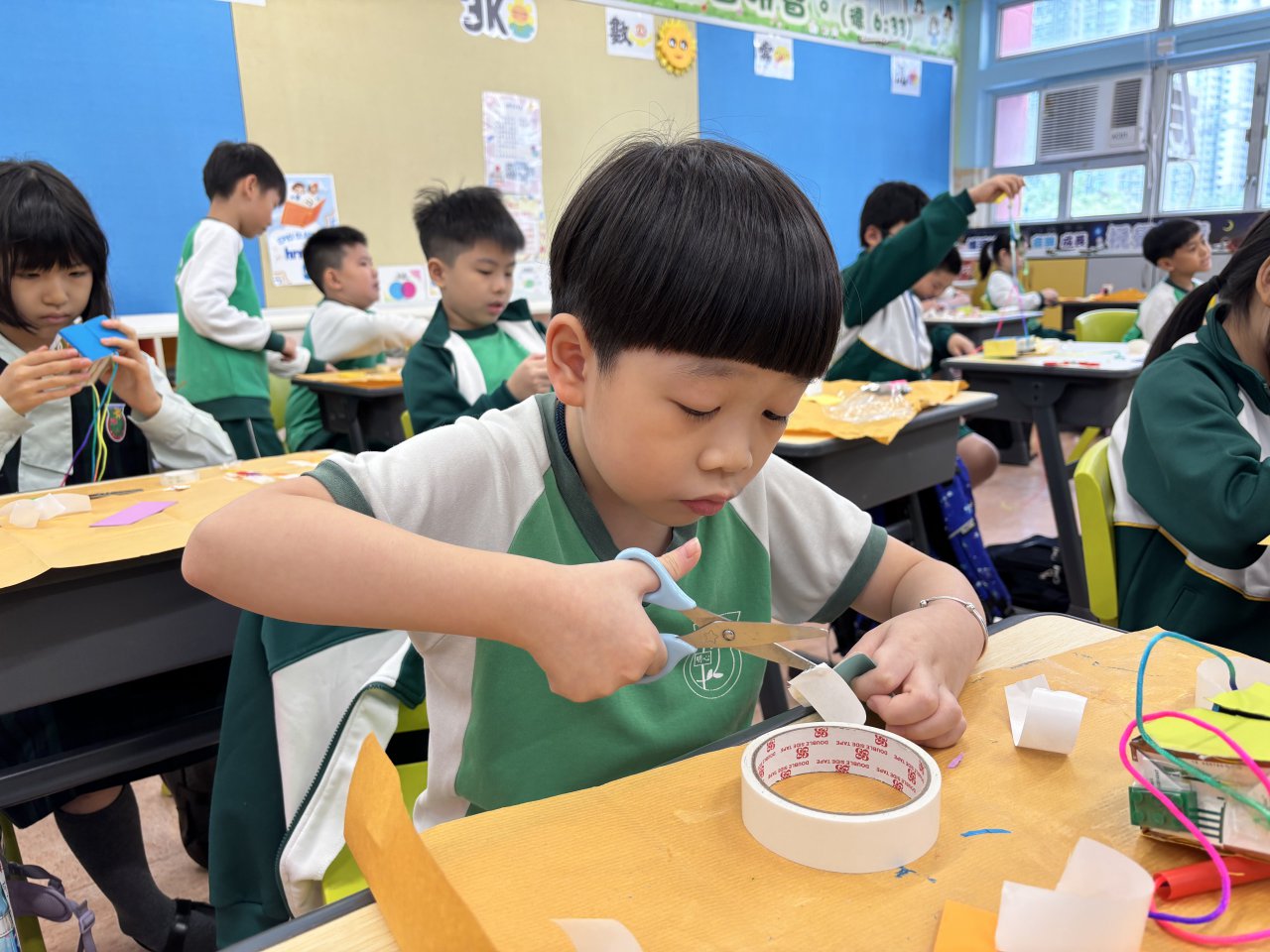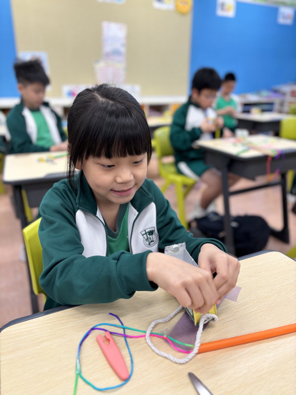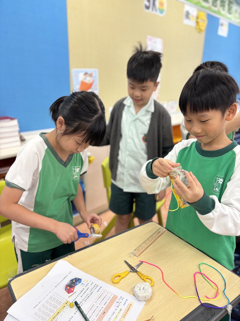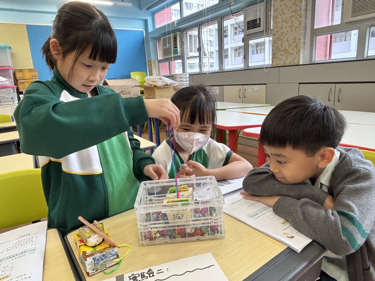 三年級同學運用簡單物料自製夾公仔機,利用機械運作原理控制夾子的開合,在公仔機上設計精美的圖案。經過多次改良,在第三天STEAM DAY,同學們進行了刺激的夾公仔比賽,以夾到最多物品者為勝。在過程中,同學們充分展現了創造力、解難和協作能力。