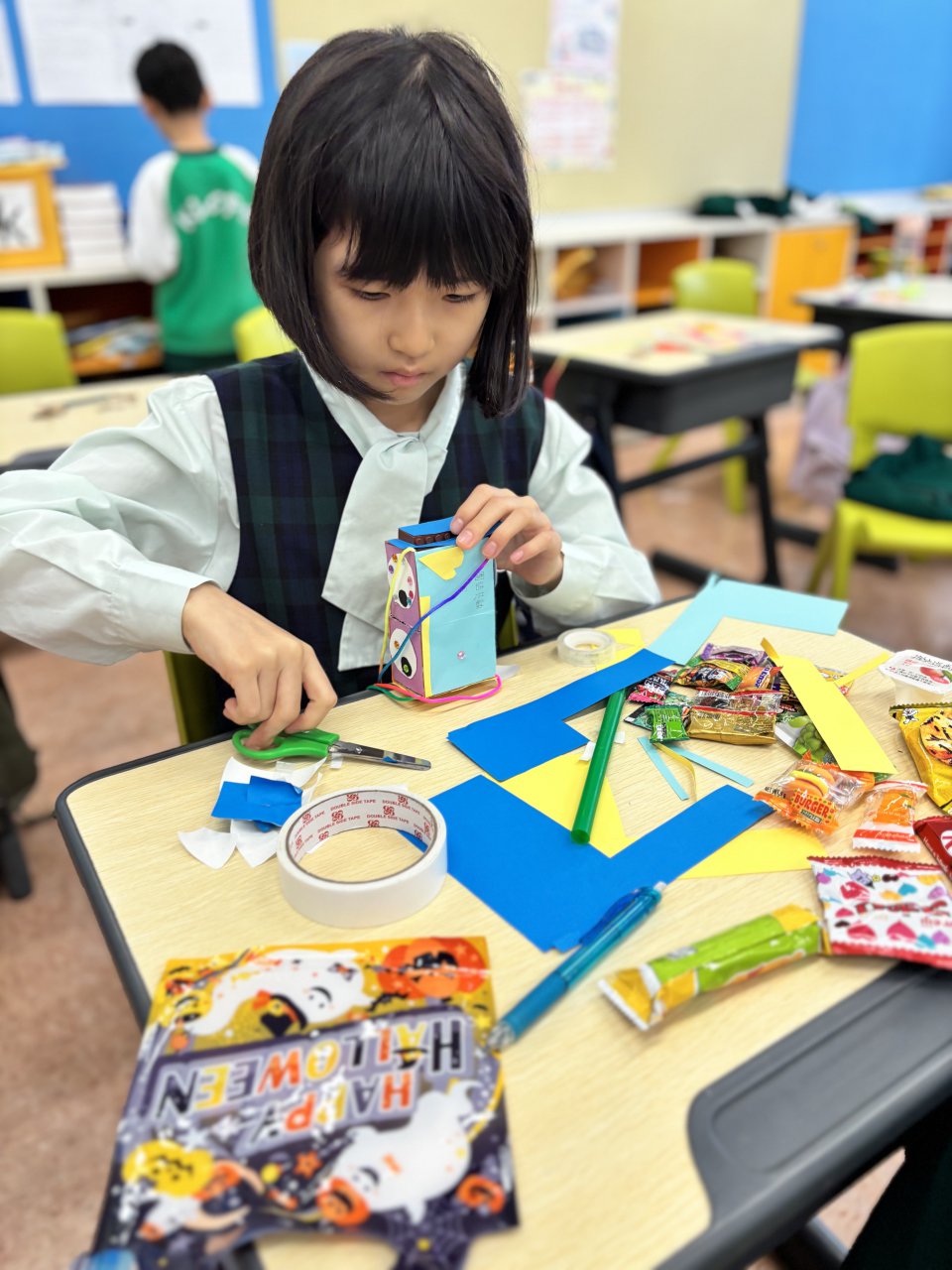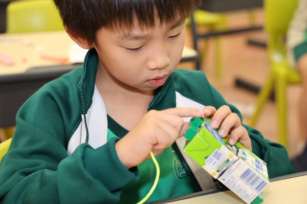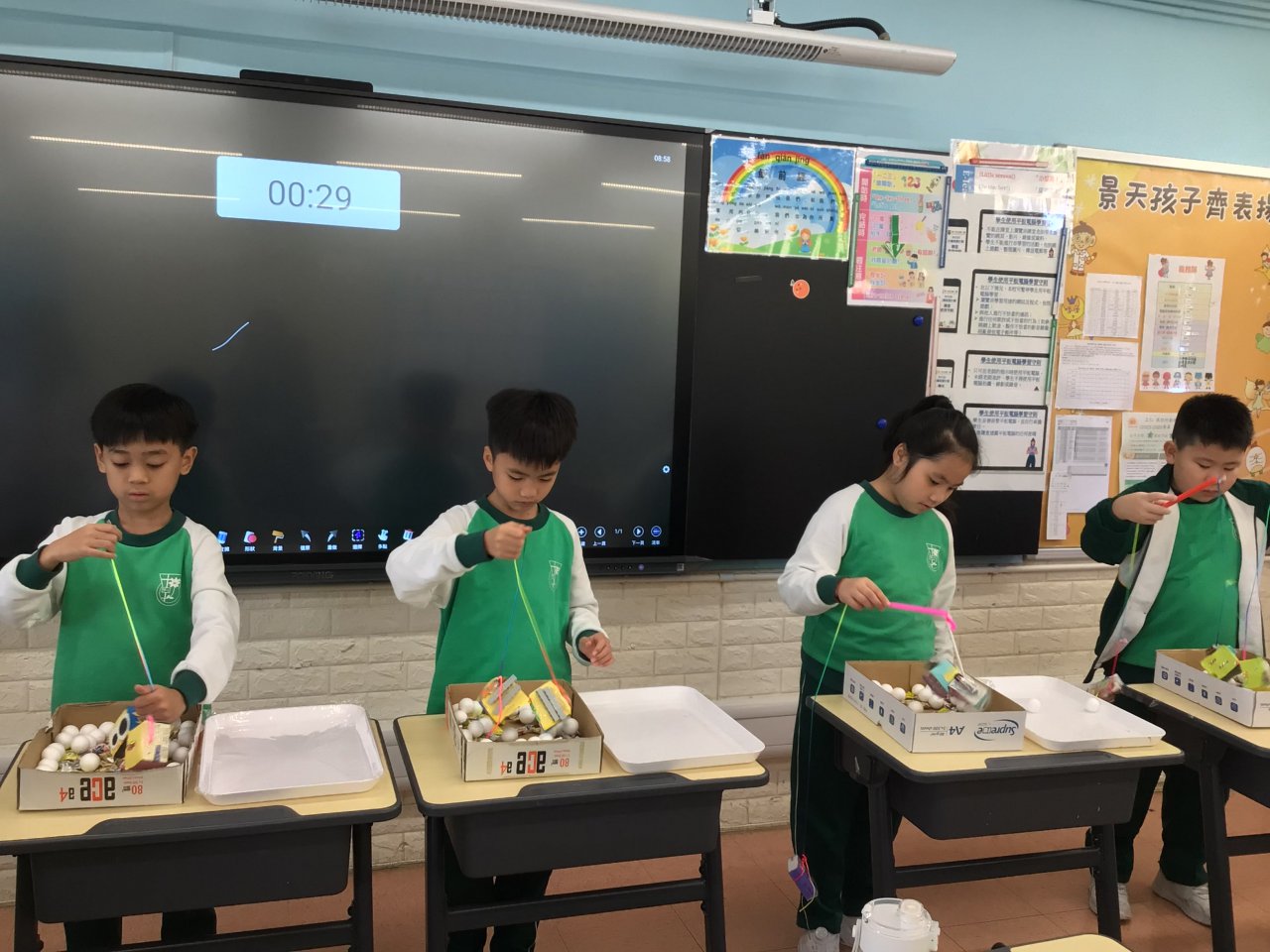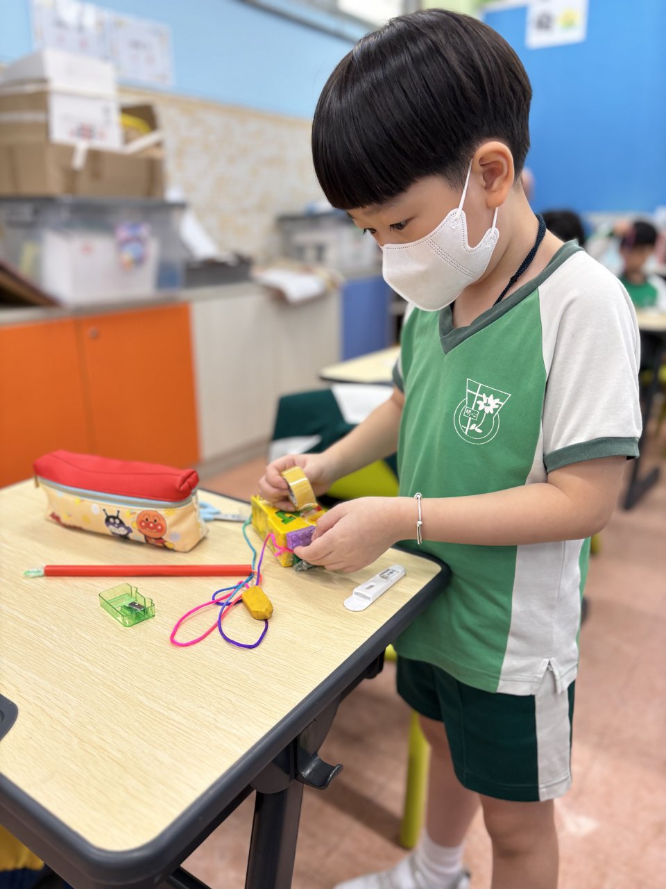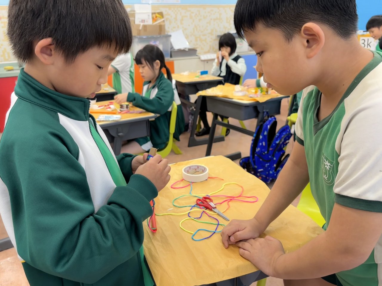 三年級同學運用簡單物料自製夾公仔機,利用機械運作原理控制夾子的開合,在公仔機上設計精美的圖案。經過多次改良,在第三天STEAM DAY,同學們進行了刺激的夾公仔比賽,以夾到最多物品者為勝。在過程中,同學們充分展現了創造力、解難和協作能力。
