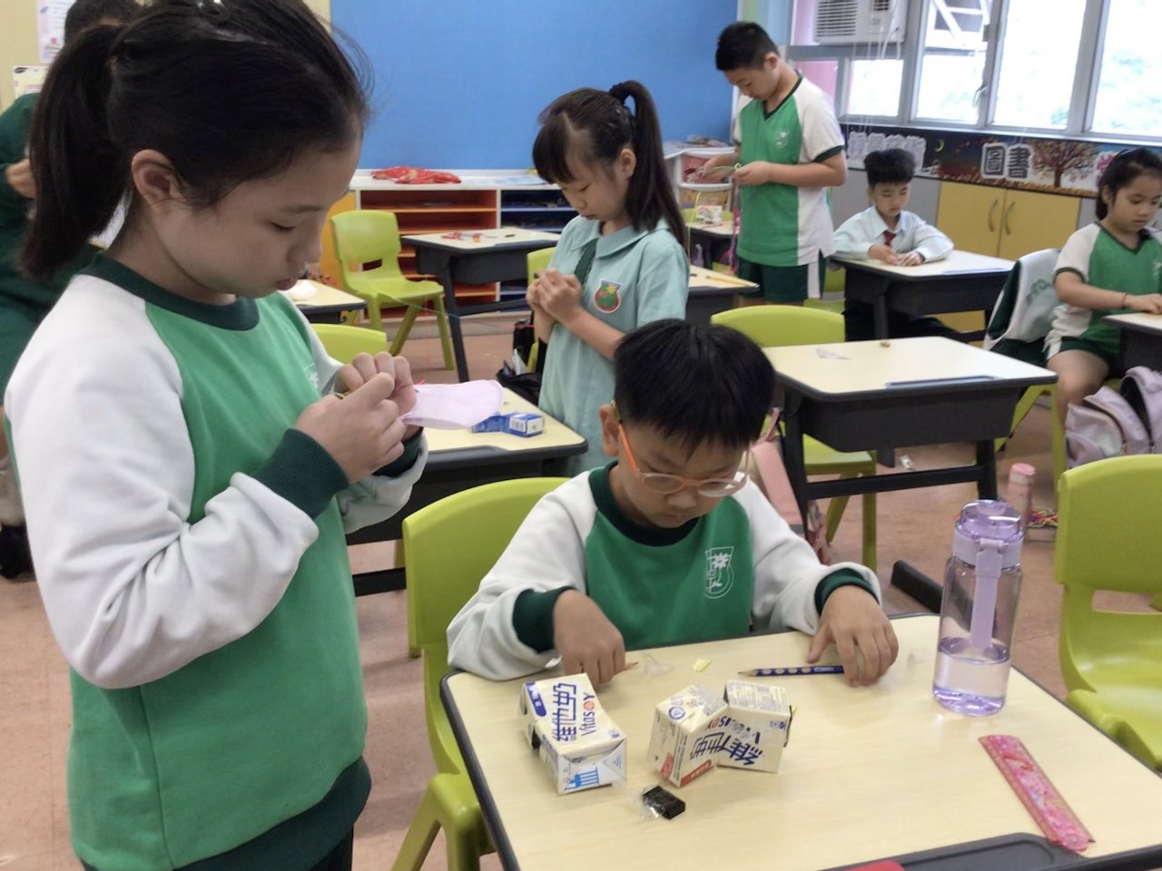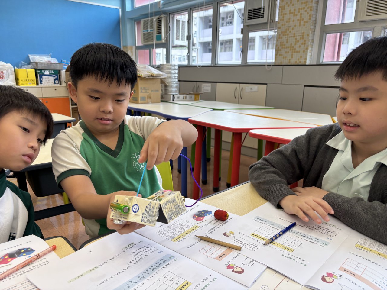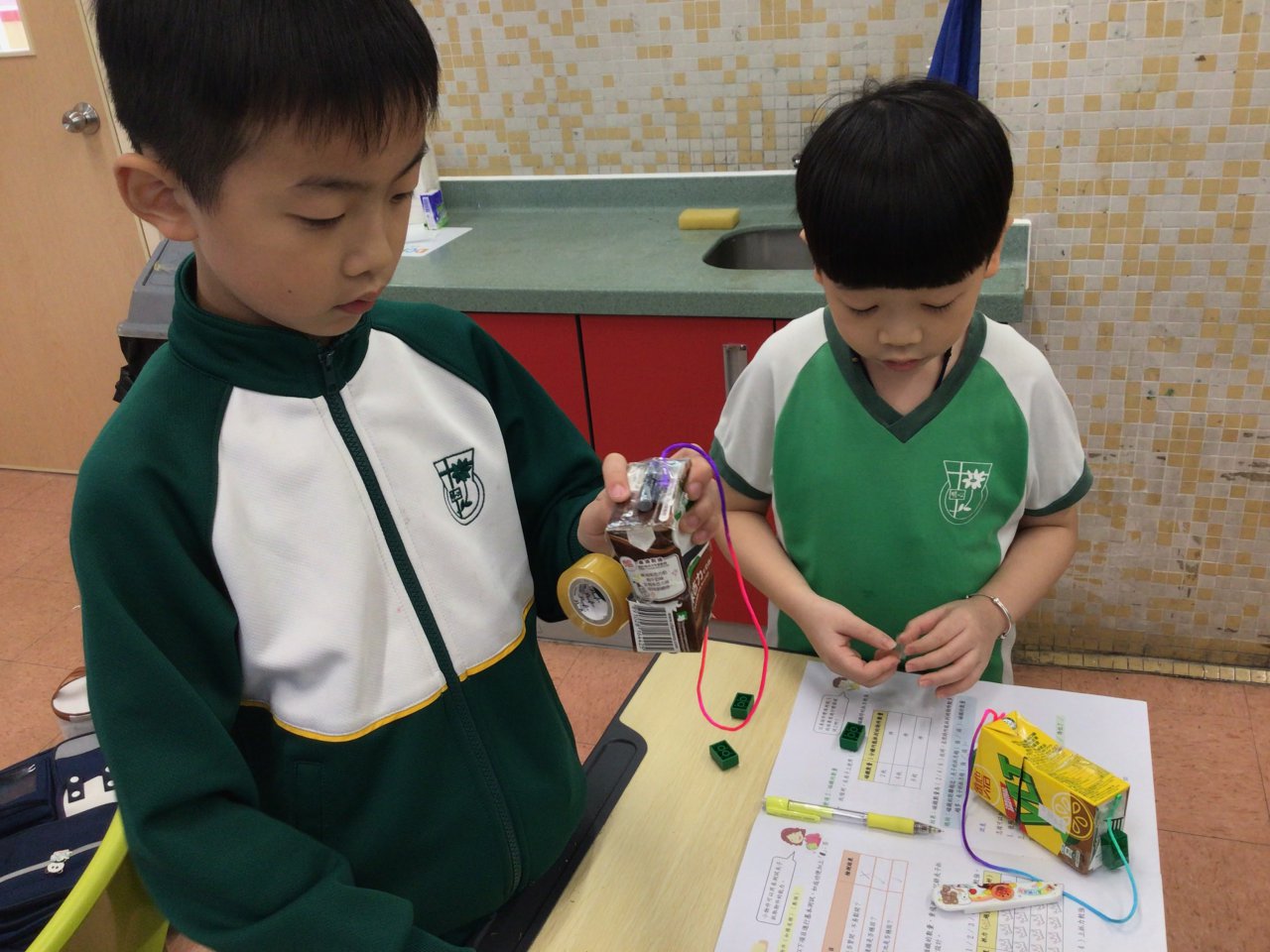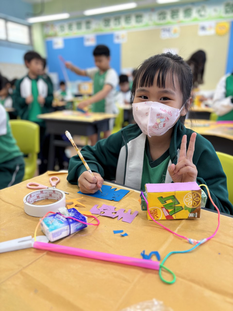 三年級同學運用簡單物料自製夾公仔機,利用機械運作原理控制夾子的開合,在公仔機上設計精美的圖案。經過多次改良,在第三天STEAM DAY,同學們進行了刺激的夾公仔比賽,以夾到最多物品者為勝。在過程中,同學們充分展現了創造力、解難和協作能力。