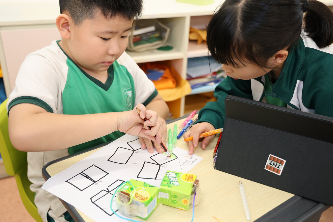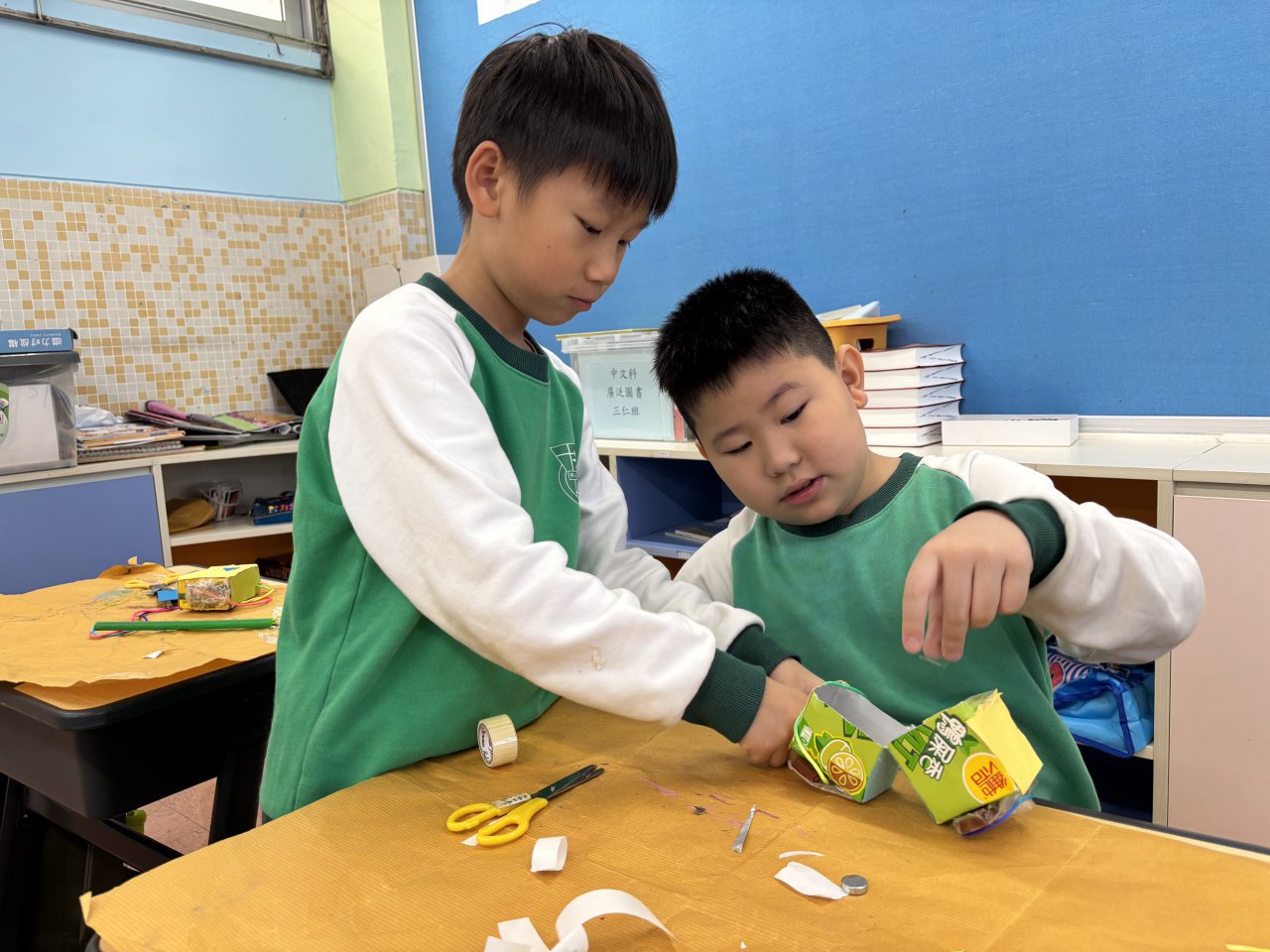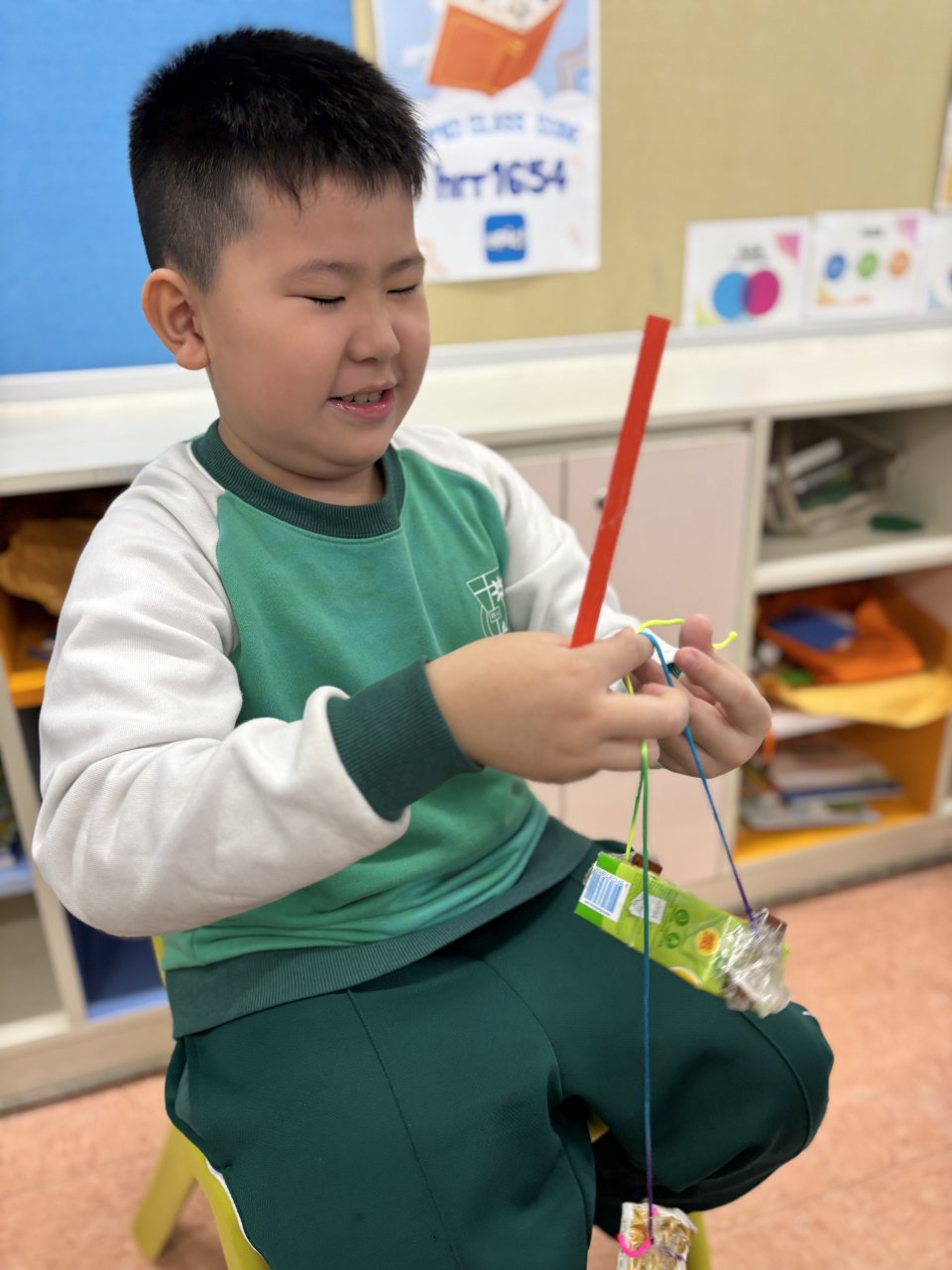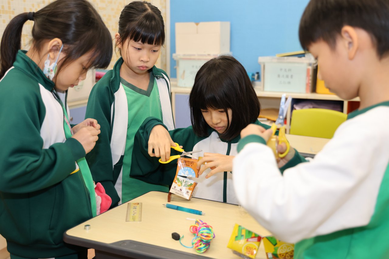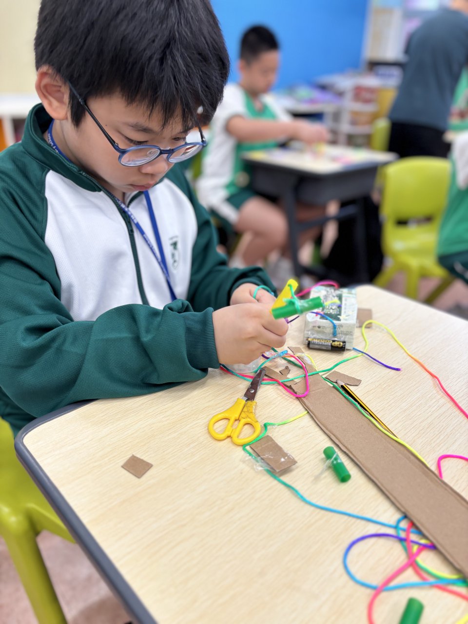 三年級同學運用簡單物料自製夾公仔機,利用機械運作原理控制夾子的開合,在公仔機上設計精美的圖案。經過多次改良,在第三天STEAM DAY,同學們進行了刺激的夾公仔比賽,以夾到最多物品者為勝。在過程中,同學們充分展現了創造力、解難和協作能力。