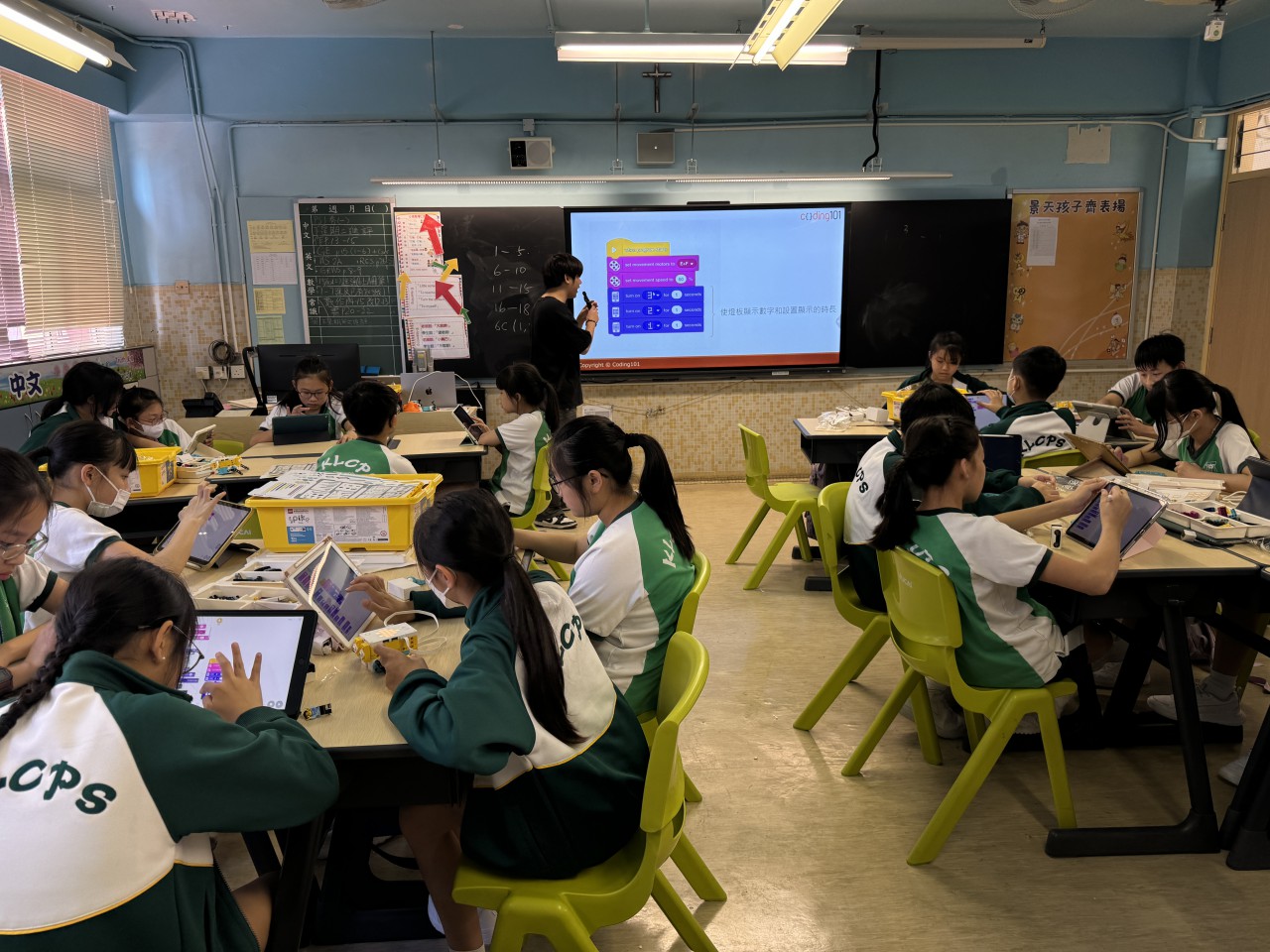五年級及六年級的學生在逢周五的 Happy Hour 時間都會一起參加「奇趣IT識多啲」項目下共 10 堂的 STEAM 課程。五年級學生學習使用 micro:bit 進行編程,並配合科技套件,製作創新發明;六年級學生使用 LEGO Spike Prime 套件,砌出能跑能動的 LEGO 機械人及機械車,更學習以編程對機械人進行控制。