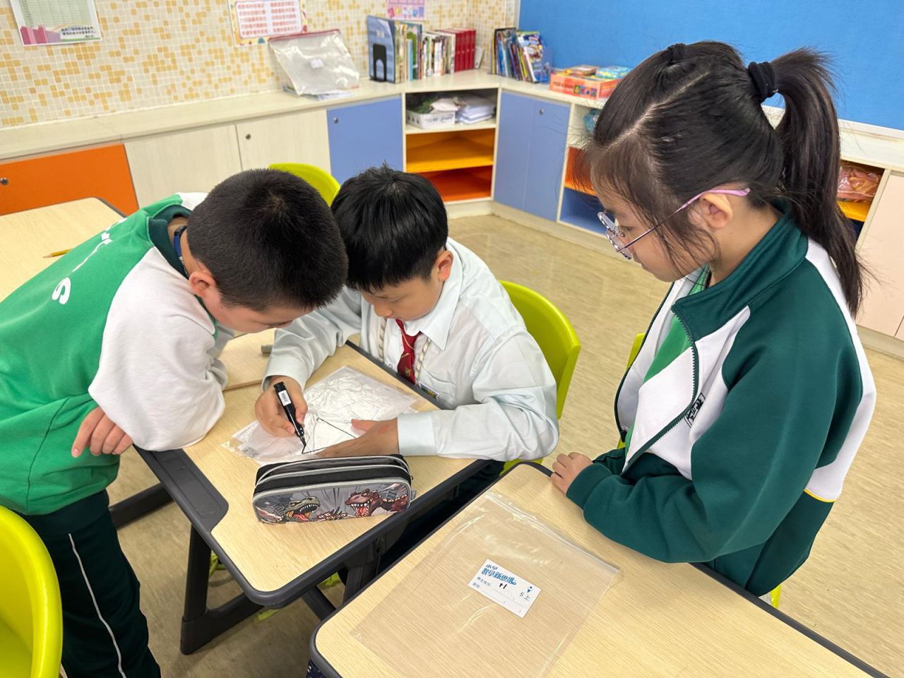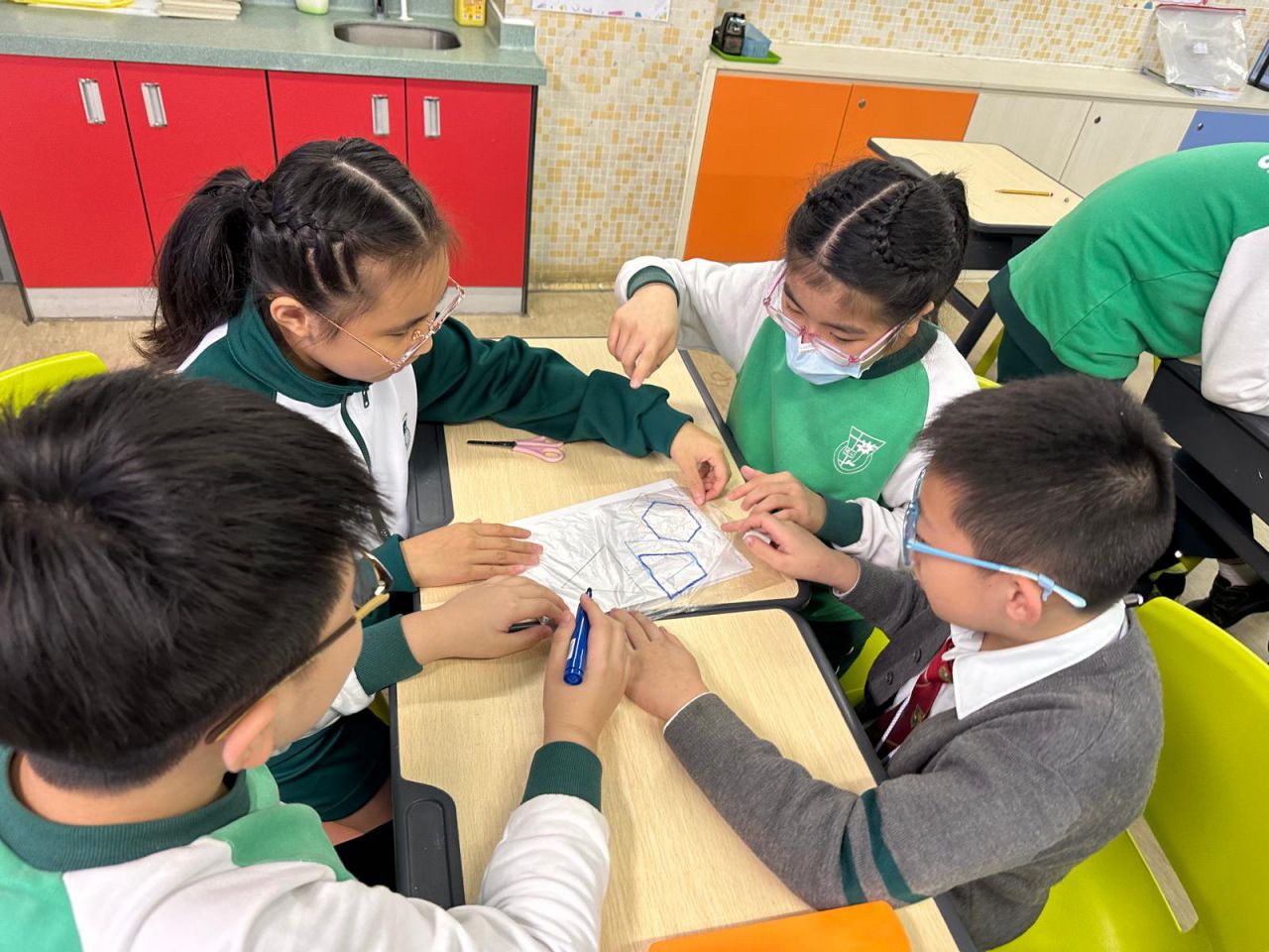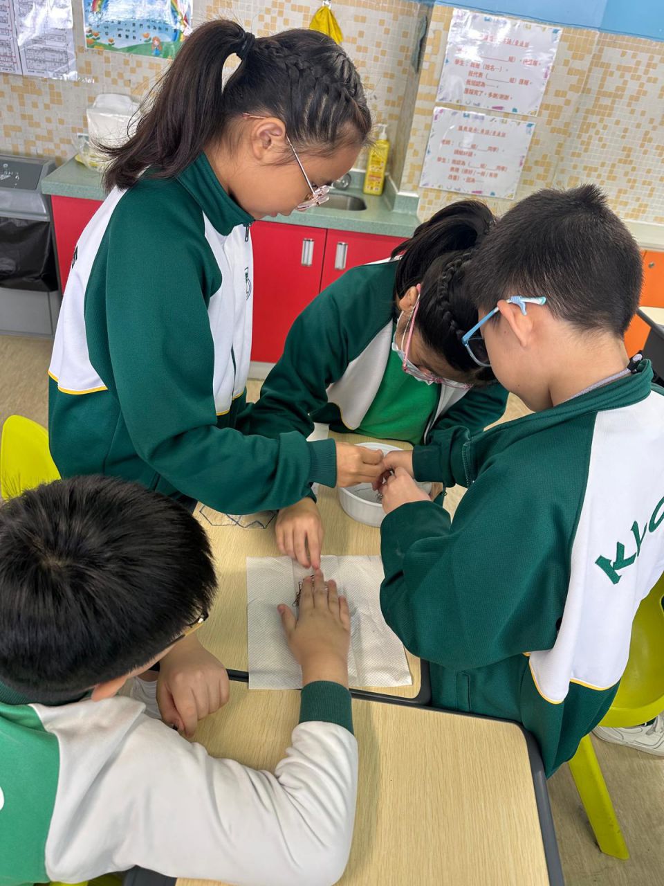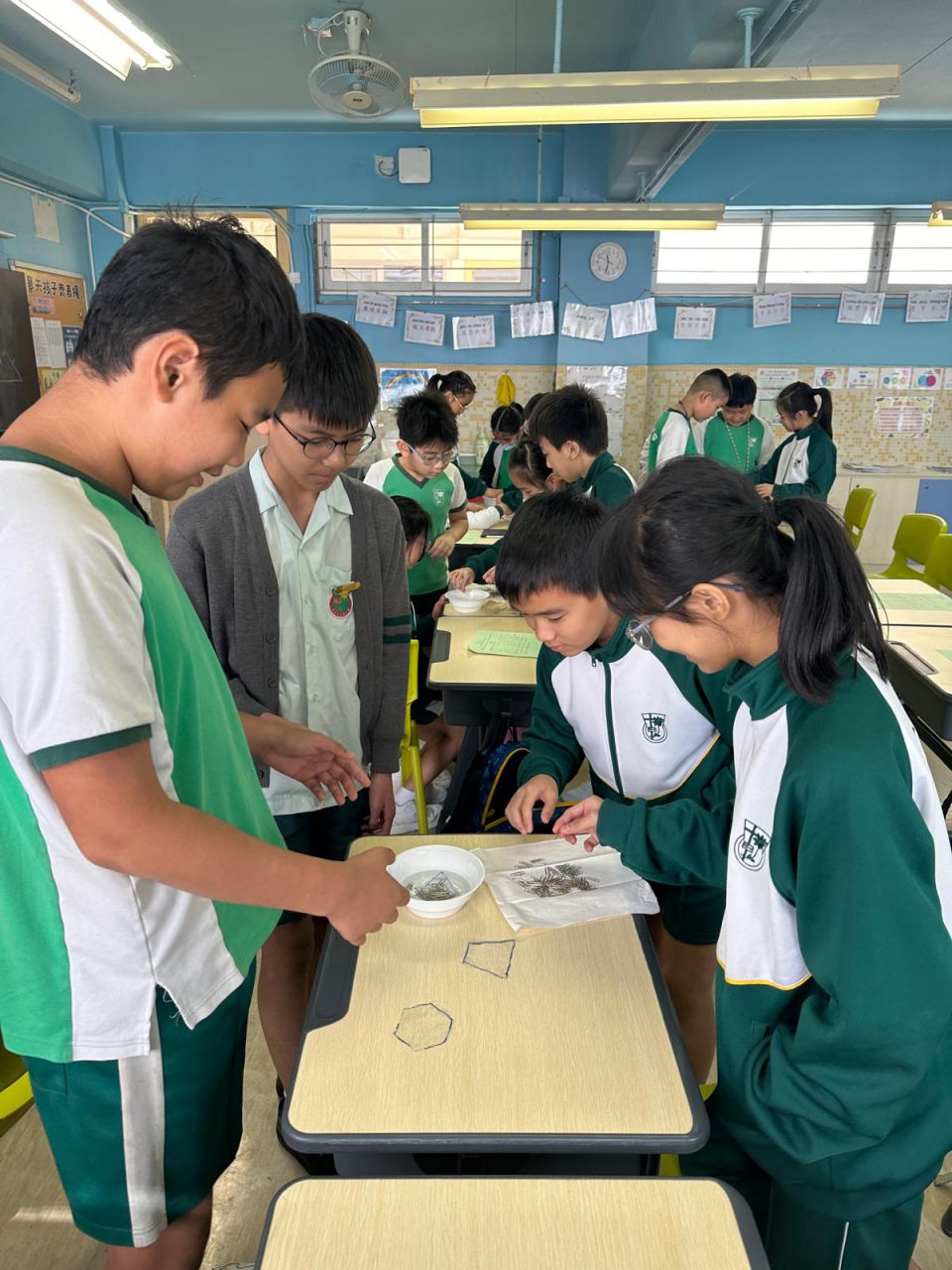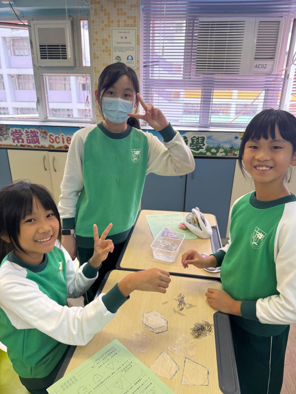 我們在 HAPPY HOUR 時段進行了認識數學科探究活動,五年級同學運用數學課堂所學的多邊形面積概念,用三個形狀不一、面積相同的多邊形製作小貨船。他們測試各個小貨船能承載多少個萬字夾而不下沉。 結果是出乎大家意料之外!即使貨船面積相同,放置萬字夾的位置和力度也會影響貨船承載量,原來貨船的形狀並非唯一影響浮沉的因素。