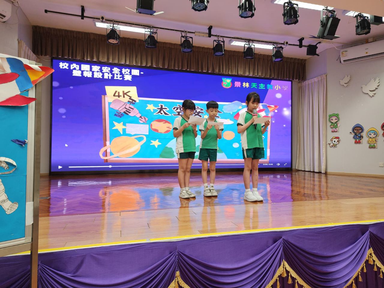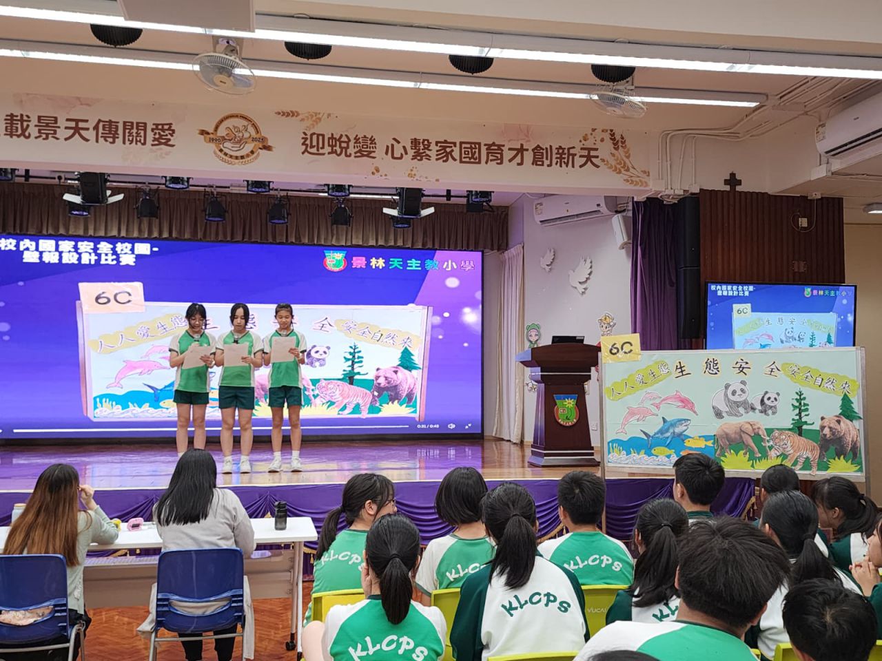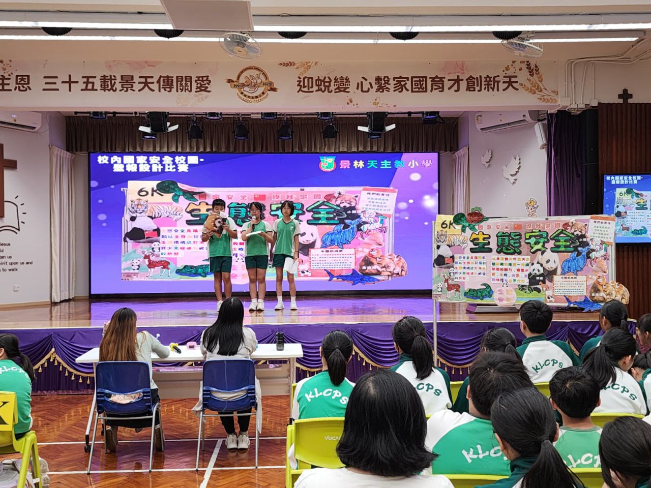 四至六年級的同學則移師禮堂,參與「校內國家安全校園壁報設計比賽滙報」 。各班派出代表,在兩分鐘限時內向裁判及全場師生精彩簡介各班的壁報內容 。比賽競逐冠、亞及季軍殊榮,現場氣氛熱烈 。期待同學們能將國家安全意識融入日常生活中!