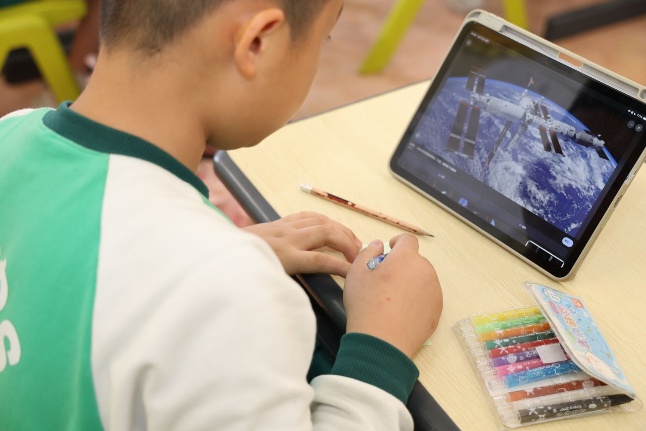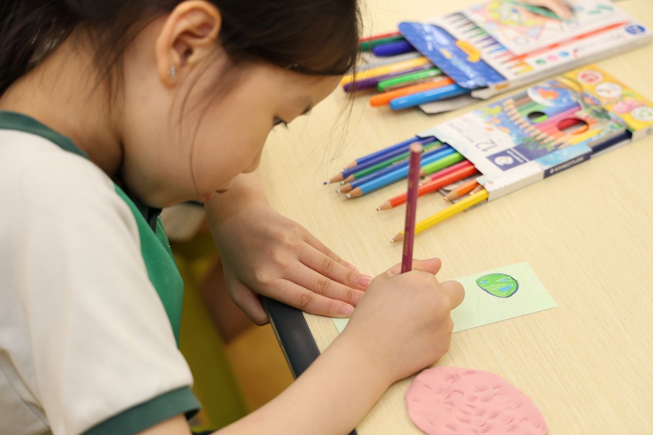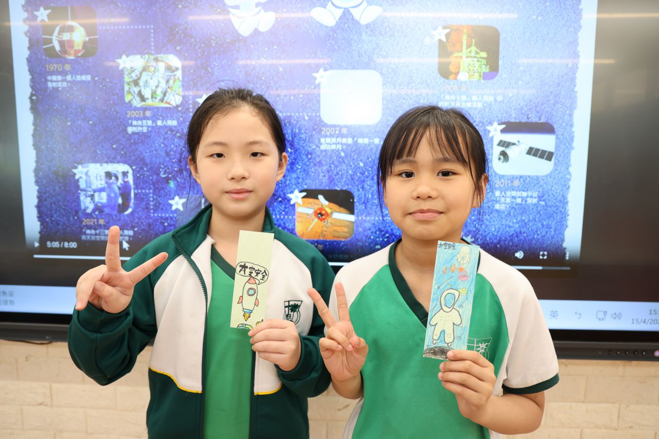 一至三年級的同學在課室內參與了別出心裁的書簽設計活動 。同學們參考了不同的重點領域,例如糧食安全、生態安全及太空安全等進行創意發揮 。