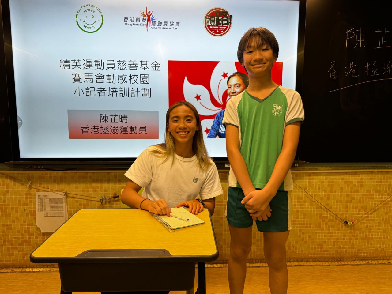 本校參與「2024-2025 精英運動員慈善基金賽馬會動感校園 - 小記者培訓計劃」,同學在課堂上學習新聞寫作、訪問技巧、體育拍攝照片及影片的技術,並採訪現役運動員(陳芷晴)和退役香港運動員(鄧亦峻)。同學從香港運動員身上學習到的堅持與香港精神。
