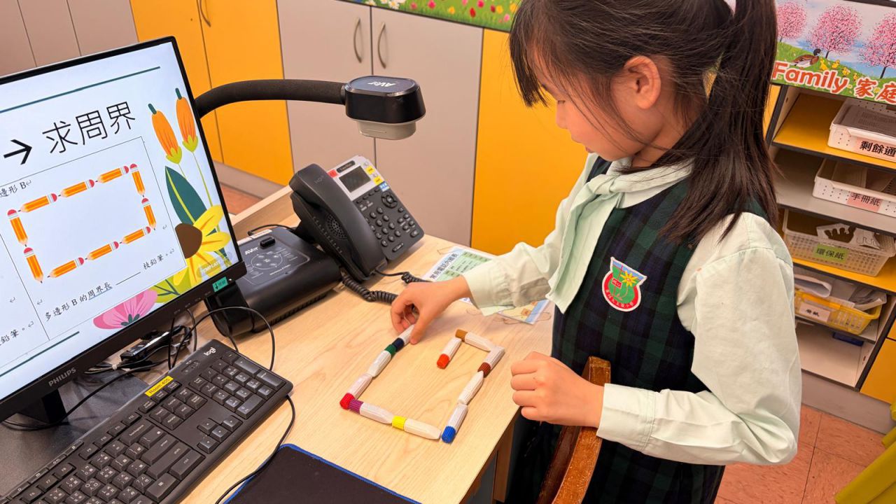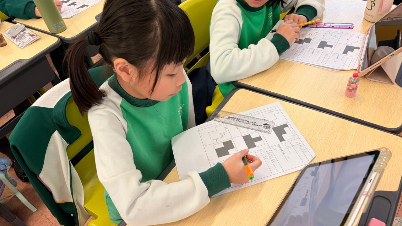 四年級同學透過活動,學習使用平移法計算多邊圖形的周界,隨後更利用這方法創作立體心意卡!