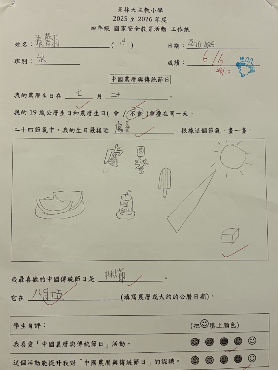 我們在 HAPPY HOUR 時段進行了認識中國傳統農曆與節日的活動,從數學中學習曆法和廿四節氣。當討論到節日食品時,大家都非常興高采烈呢!