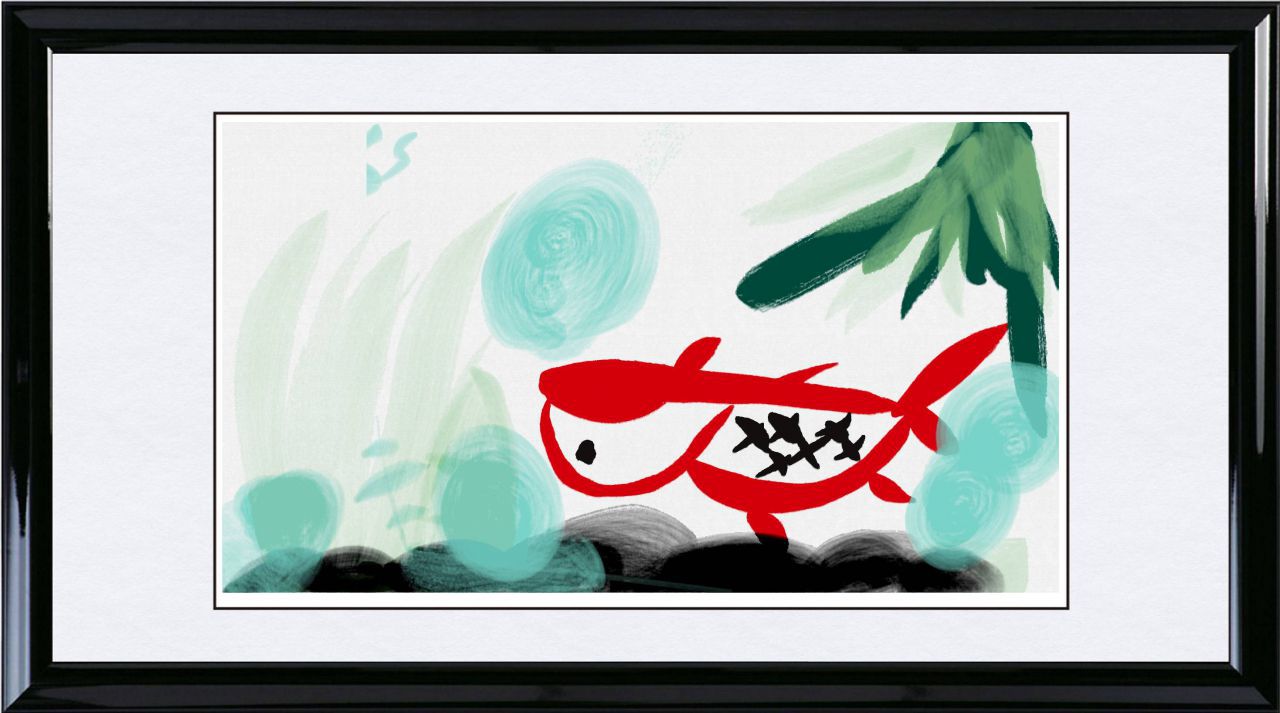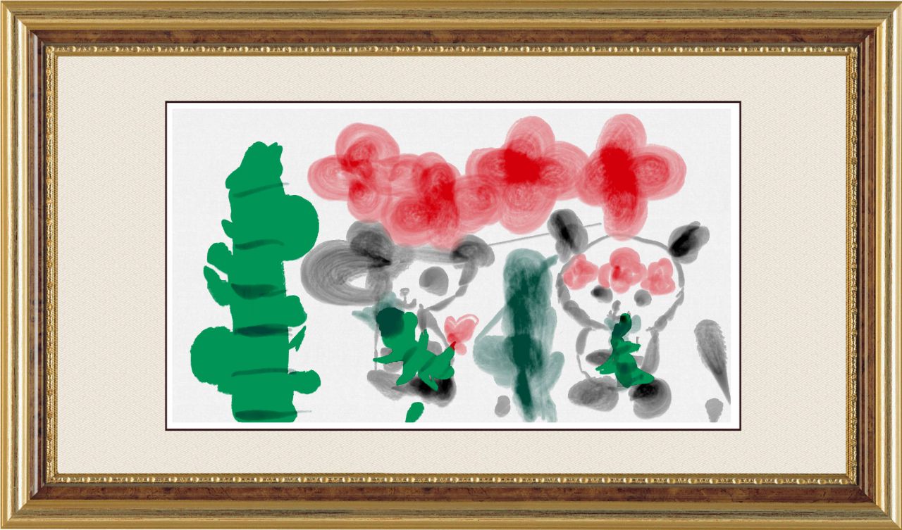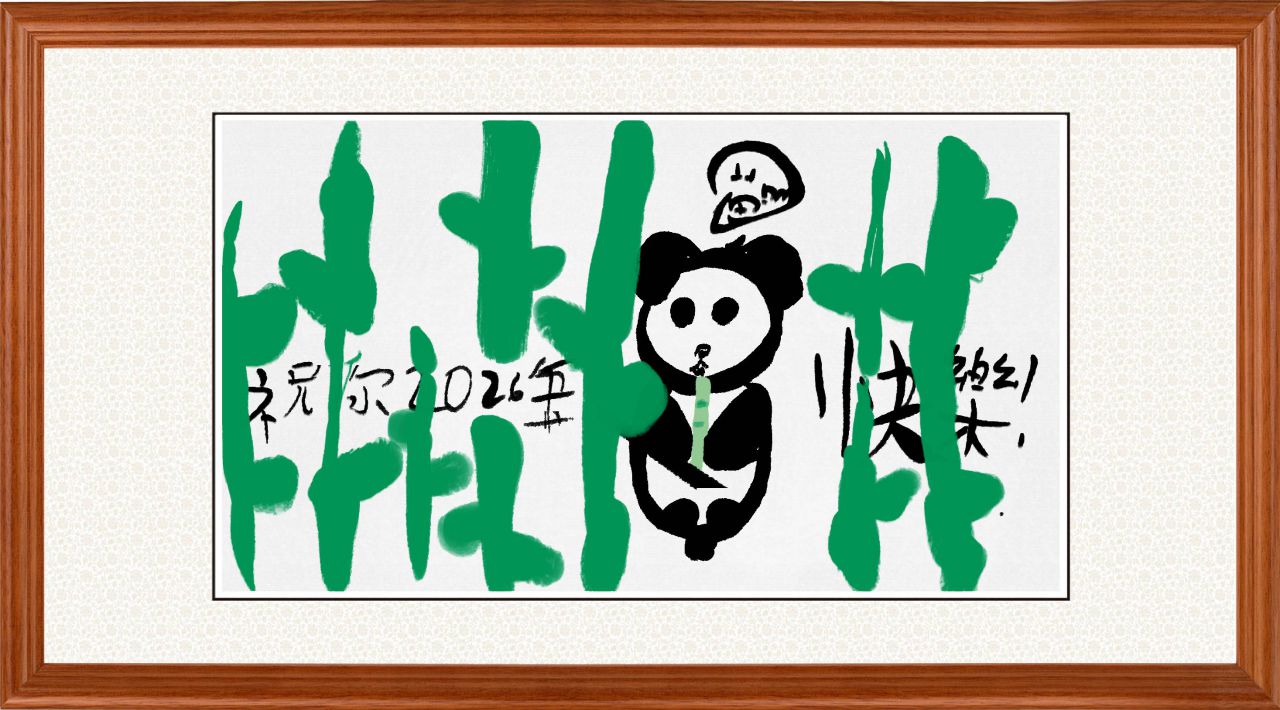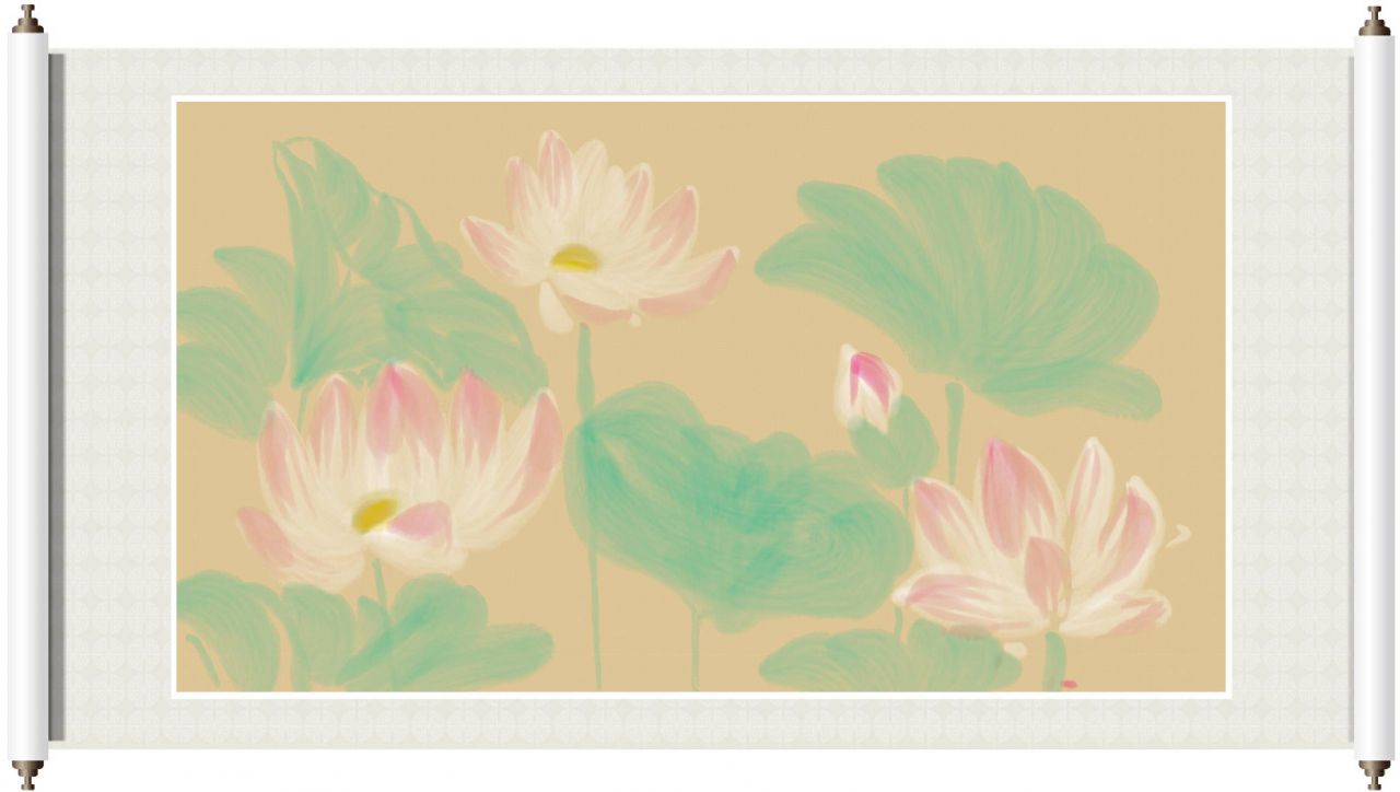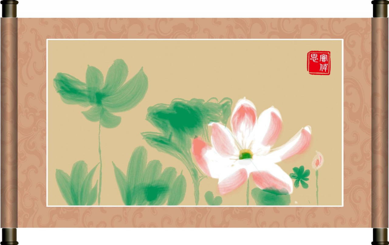 二、四、六年級學生使用書法桌欣賞水墨作品的細節,並使用毛筆在書法桌上繪畫熊貓、鯉魚和荷花。