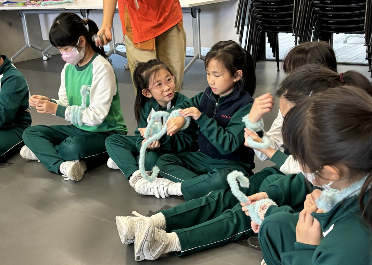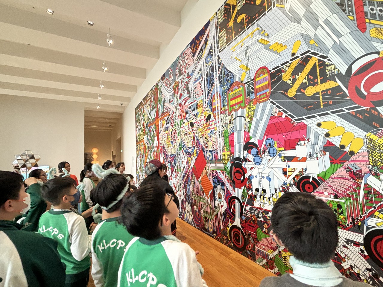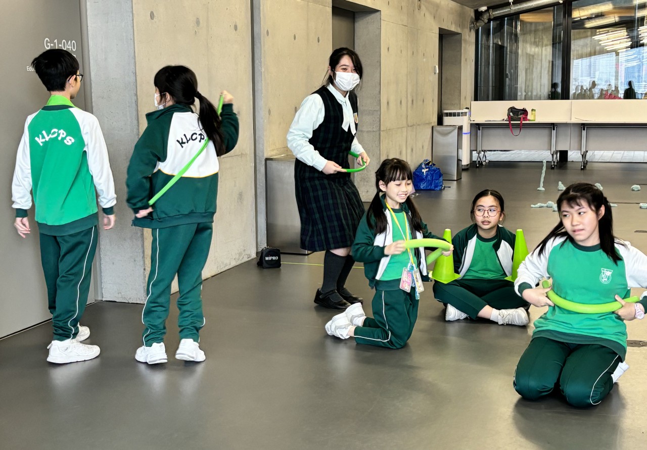 共24位景天同學到 M+博物館化身為「小小發問大師」,在欣賞展覽的過程中,思考作品所表達的意義,提出一系列的問題。參觀展覽後,同學用小道具發揮無窮創意,扮演游泳池的事物、製作天橋、創作迷你城市。