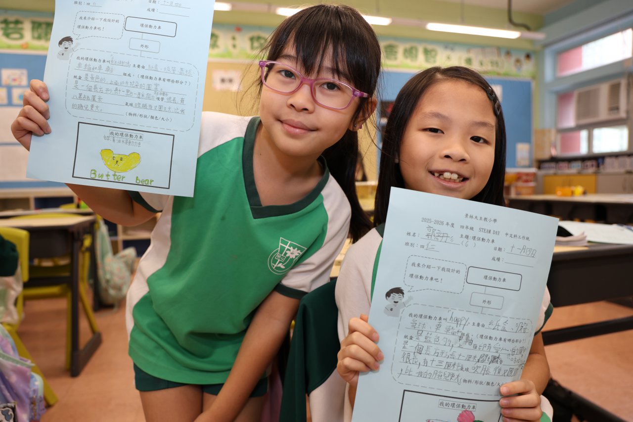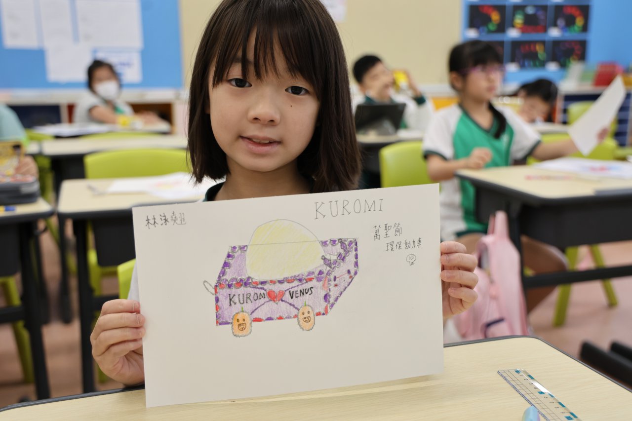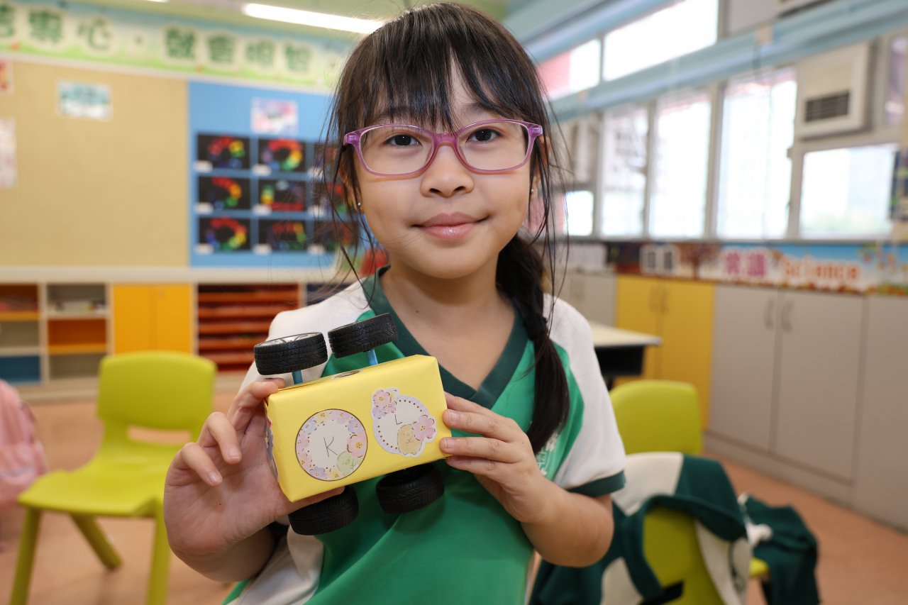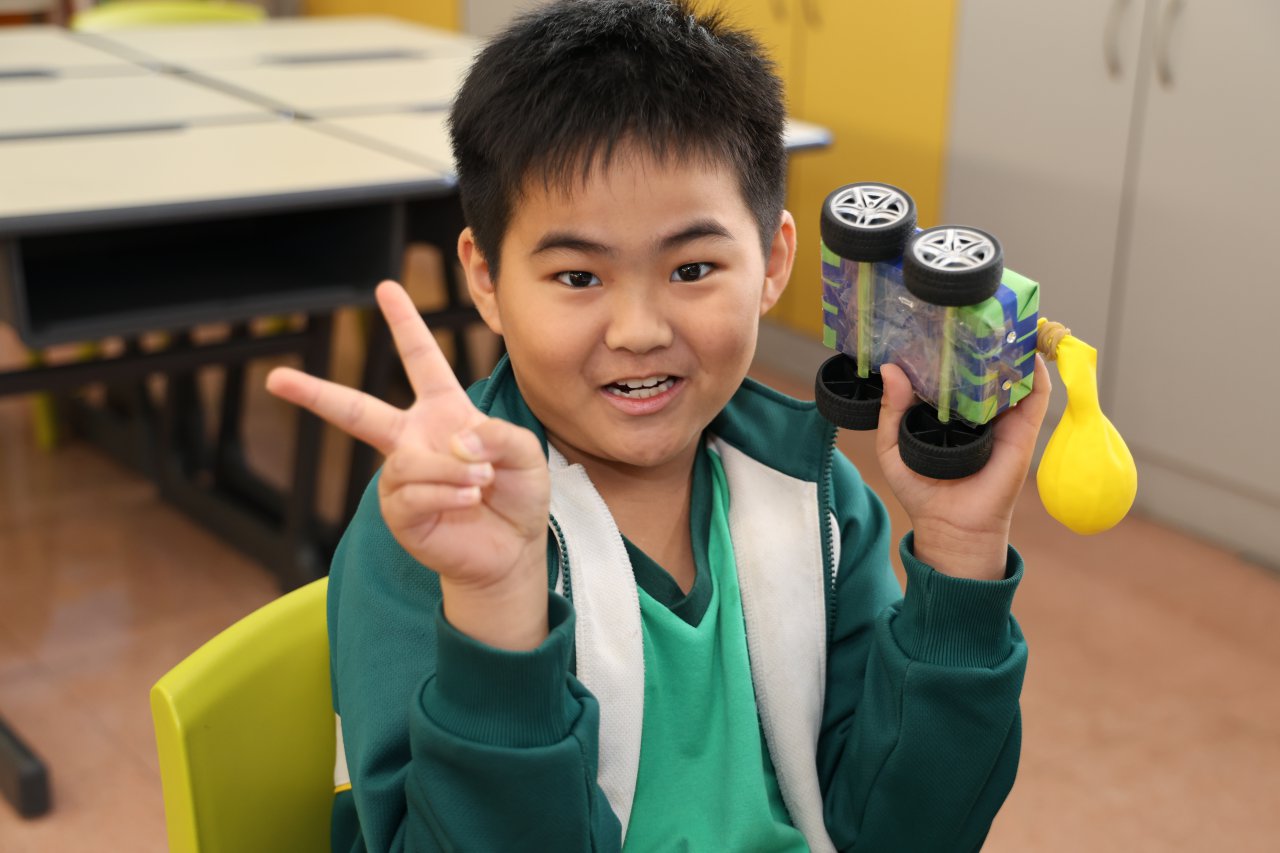 四年級同學生於 STEAM DAY 了解更多的交通工具所造成的空氣污染問題,並利用紙包飲品盒、氣球、車輪、車軸和簡單的環保物料設計及製作了一輛環保動力車,當中學習作用力和反作用力的科學原理,並進行既緊張又刺激的班際比賽!同學都十分投入老師亦從同學中挑選最用心設計大獎及最具創意獎,鼓勵用心裝飾動力車的學生。