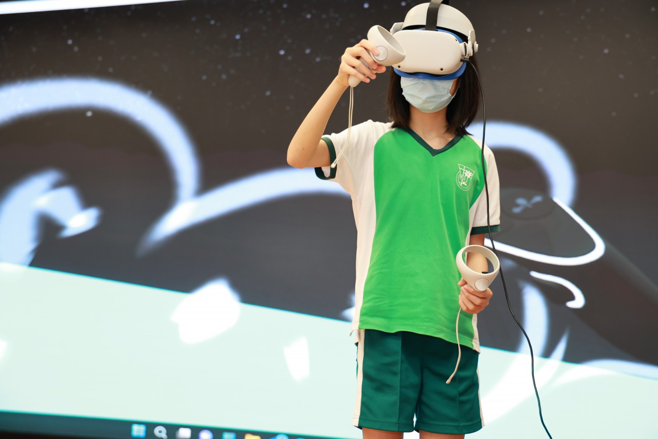 本年度視藝展特別安排本地VR藝術家黃學豐先生親臨本校,與本校學生於禮堂LED WALL 進行VR極光繪畫表演。黃學豐先生是香港首位到北極繪畫極光的藝術家,同時亦是香港首位VR虛擬繪畫藝術家。黃學豐先生在展覽中分享勇闖極地繪畫北極光的經歷。是次演出以北極保育為題,講述全球暖化導致海冰面積逐漸縮小,北極熊寶寶在冰川中與熊媽媽失散,最後母子重逢的故事。