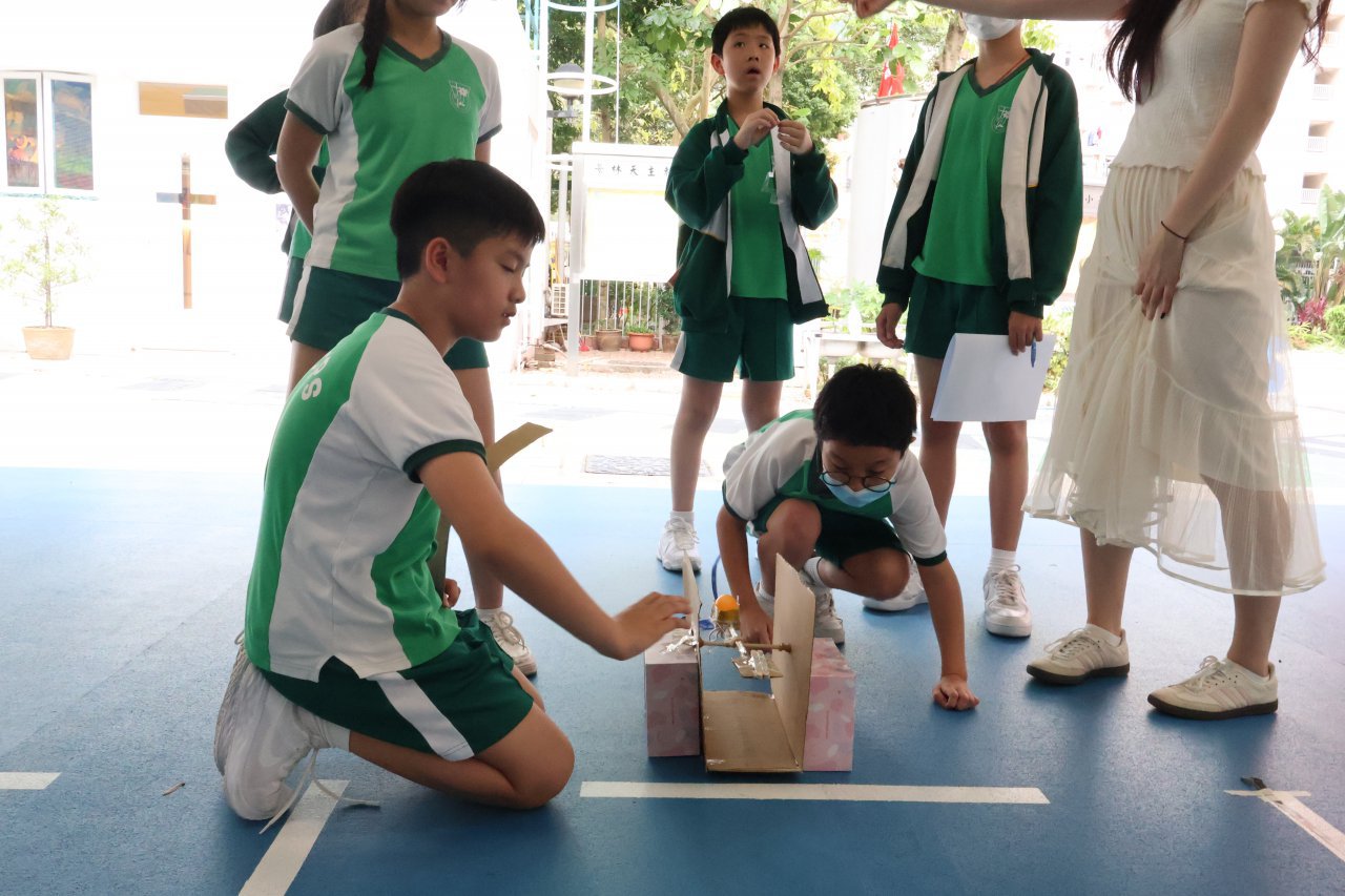 今年的5月27日,六年級學生進行了科學探究活動,主題是「無敵大炮台」。準備過程中,他們都非常認真學習、研究,設計及改良,希望自己的炮台能突圍而出,發射出最遠距離的炮彈,俾能在班際比賽中勝出。其實,製作這個大炮台,是需要把簡單機械中的槓桿原理的實踐出來,絶對不是兒戲。整個學習過程中,同學們都積極投入,真正做到寓學習於遊戲。