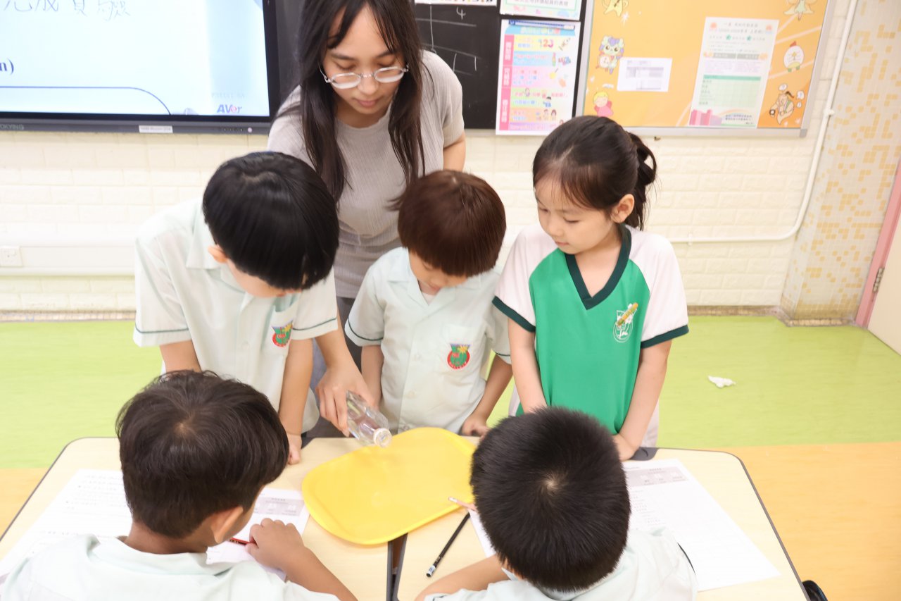 在科探活動中,一年級的同學們化身為小偵探,親手觸摸、觀察、測試各種日常物料。