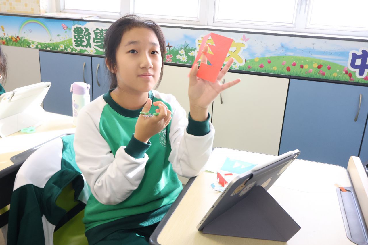 五年級同學運用數學課堂所學的多邊形面積概念,用三個形狀不一、面積相同的多邊形製作小貨船。他們測試各個小貨船能承載多少個萬字夾而不下沉。根據每組不一樣的結果,大家知道,即使貨船面積相同,放置萬字夾的位置和力度也會影響貨船承載量,而貨船多邊形形狀並非唯一決定因素。大家都非常投入參與這次活動!